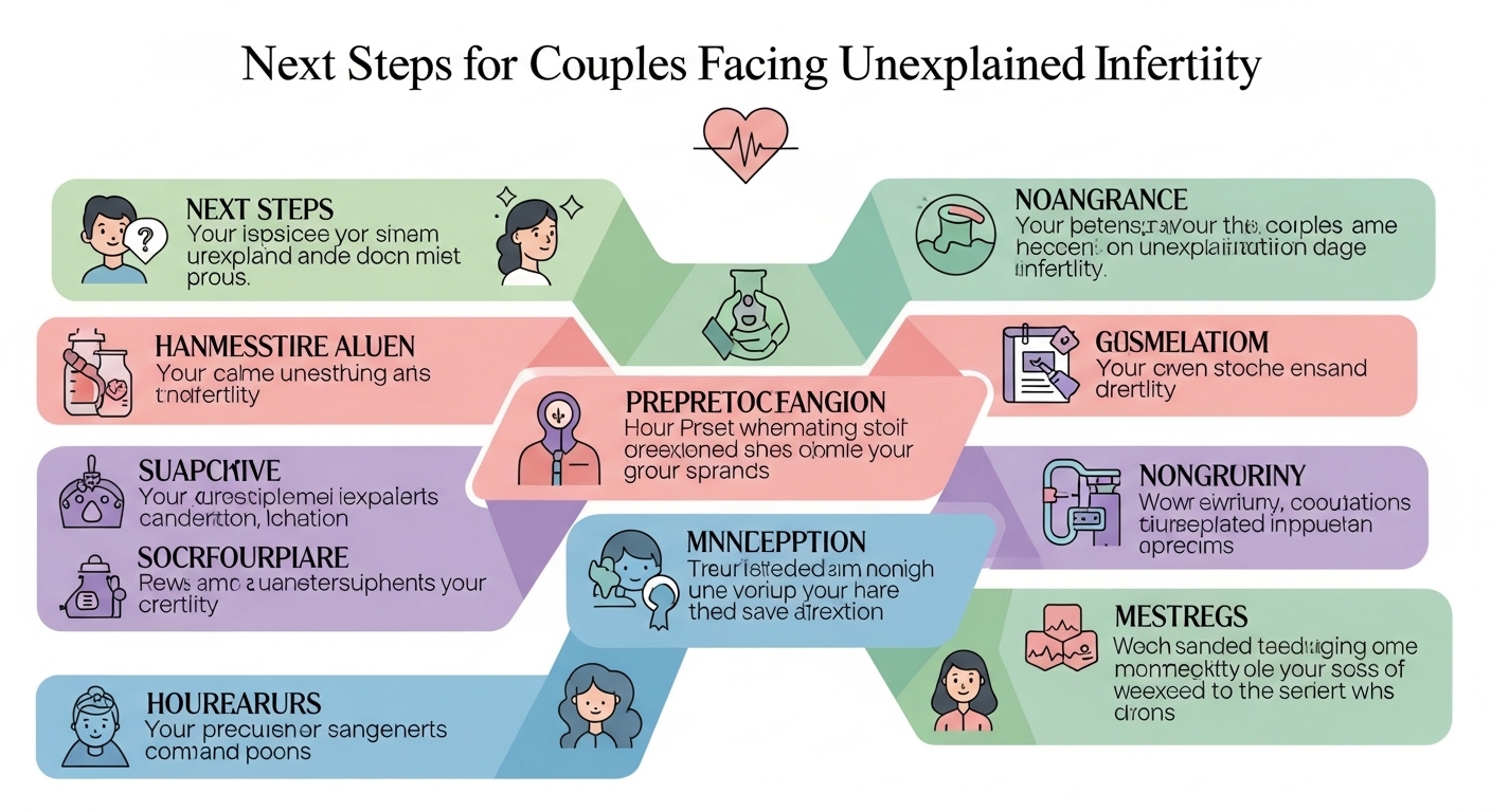 Unexplained infertility occurs when a couple is unable to conceive after regularly trying, and no identifiable medical cause can be found. It is caused by various factors, including hormonal imbalances and structural issues in the reproductive organs. A reproductive endocrinologist helps diagnosis the condition and recommends treatment options. Here are some next steps for couples facing unexplained infertility: